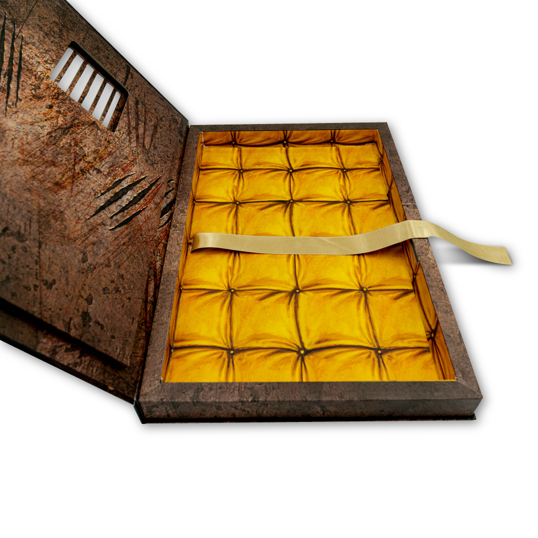 • Piece of Mind asylum clamshell box with locking cell door action custom slipcase